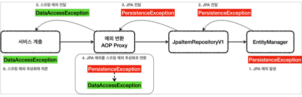 JPA의 경우 예외가 발생하면 JPA 예외가 발생하게 된다. RuntimeException을 extends한 PersistenceException을 상속한 예외, IllegalStateException, IllegalArgumentException을 발생시킨다. 이걸 어떻게 스프링에서 제공하는 예외 추상화 DataAccessException 하위 예외로 바꿀 수 있을까?