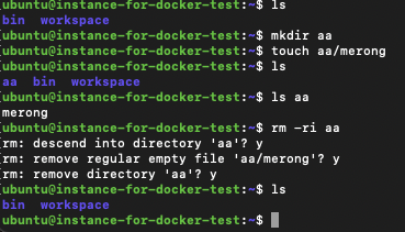 위에서 rmdir이 디렉토리를 삭제하는 명령어라고 했지만 만약 해당 디렉토리를 rmdir로 지우려 한다면 그 안의 트리들을 전부 수동으로 삭제해줘야 한다. 이럴때 rm의 -r 명령어를 사용하면 된다. 만약 그 안에 파일들을 보면서 삭제하고 싶다면 rm -ri 옵션을 사용하면 된다.