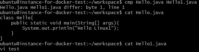 cmp Hello.java Hello1.java