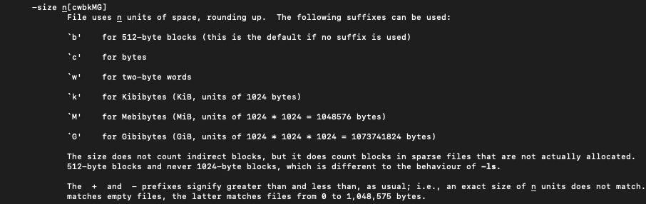 이렇게 적어주면 java 파일의 경로가 모두 나오게 된다. 용량으로도 찾아줄 수 있는데
