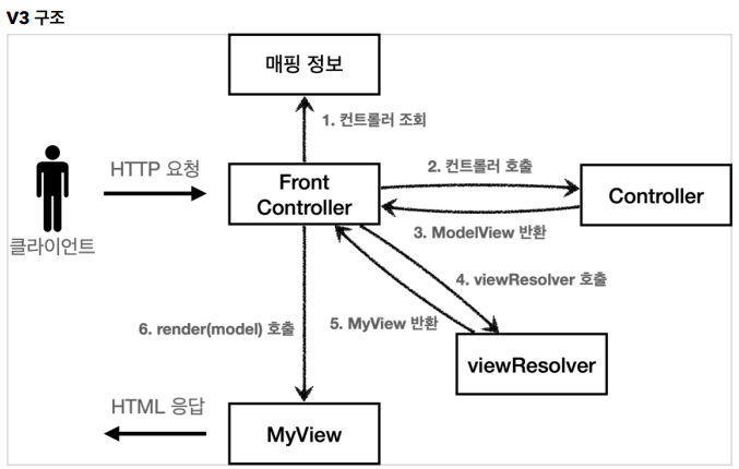 다섯단계로 나눠 스프링 MVC와 같은 패턴을 구현한다.